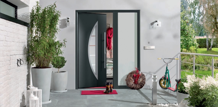 Coraz bardziej doceniamy także rolę światła słonecznego w strefie wejścia. Zapewnia ono naturalne doświetlenie i jednocześnie optyczne powiększenie. Obecność światła mamy zagwarantowaną dzięki drzwiom wyposażonym w przeszklenia. Dzisiaj są to modele o wysokich parametrach cieplnych. Gwarantują je pakiety szybowe wykonane ze szkła termoizolacyjnego, które zastąpiły tradycyjne jednoszybowe przeszklenia. Mogą się one składać nawet z trzech tafli szkła. Dzięki takim rozwiązaniom mają one współczynnik przenikania ciepła nawet na poziomie 1,2 W/(m2.K). Dobrym wyborem będą modele wyposażone w szybę antywłamaniową klasy P4 lub P5, co zagwarantuje drzwiom doskonałe właściwości antywłamaniowe. Drzwi wejściowe z przeszkleniami wyróżnia także idący w parze z trendami design. Modne są modele z pionowymi przeszkleniami w centrum skrzydła. Szybę otacza wówczas często wykonana z inoxu ramka. Półtoraskrzydłowe są także często wzbogacane o boczne naświetla. Na czasie są również drzwi z przeszkleniami poziomymi wbudowanymi w skrzydło lub osadzonymi wokół niego.